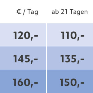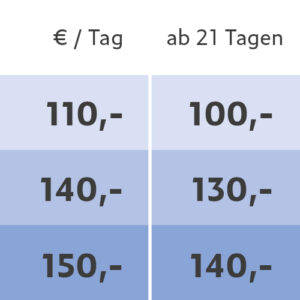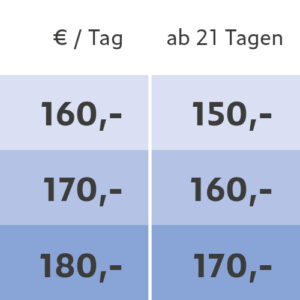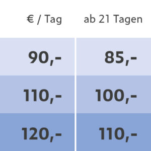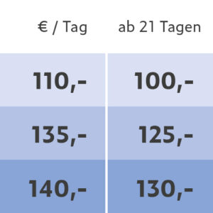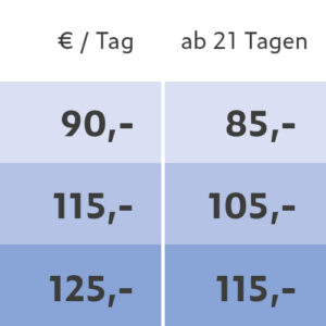 Alle Preise verstehen sich in Euro inklusive der gesetzlichen Mehrwertsteuer. Mietpreise sind gültig ab 01.11.2025, alle bisherigen Preislisten verlieren hiermit ihre Gültigkeit.
